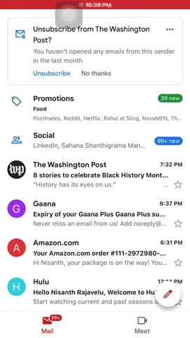 Customizable swipe gesture to do a set of actions on Gmail.